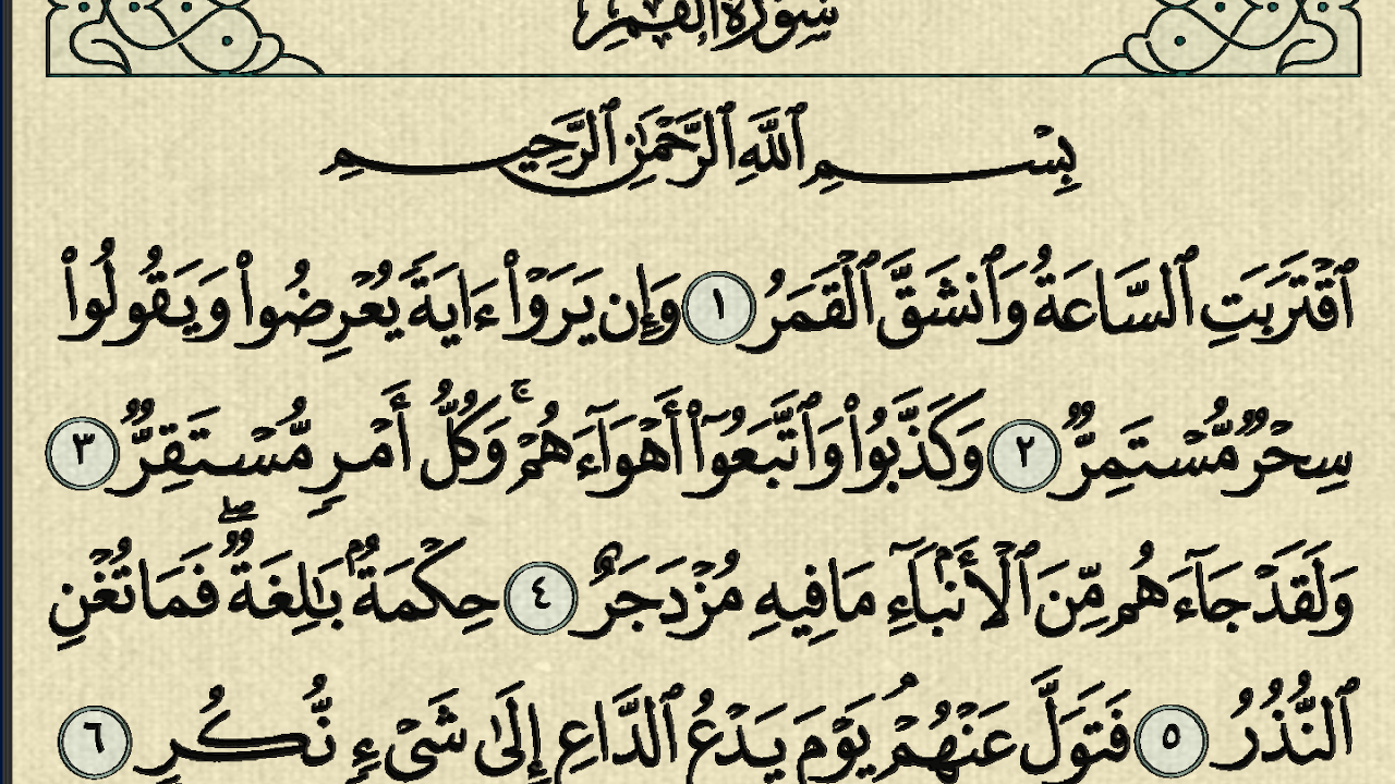 شرح وتفسير سورة القمر Surah Al Qamar من الآية 1 إلى الآية 17 معاني الأسماء ومعاني الكلمات وتفسير القرآن الكريم