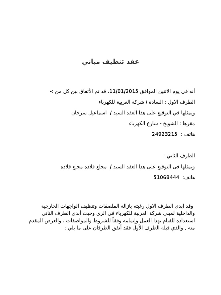 عقد اتفاق بين طرفين Doc نموذج صيغة اتفاقية Pdf للعمل وورد جاهزة